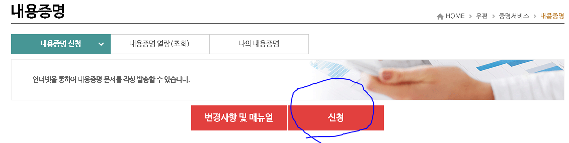 1) 우체국 내용증명 사이트 접속
