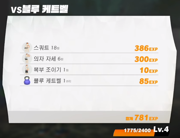 - 게임 완료 후에 하루의 운동량이 얼마나 됬는지 자세하게 제공해줍니다.